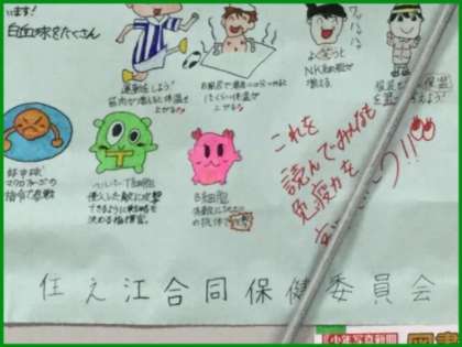 年末、住之江区の中学校の保健委員が集まり、壁新聞を作成しました。図書室前に掲示してあります。