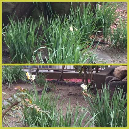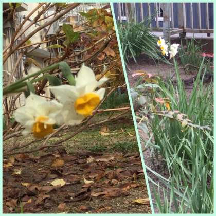 南館校舎東側にスイセンの花が咲き始めました。暖冬ですが、いつものように花が咲き始めました。
