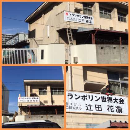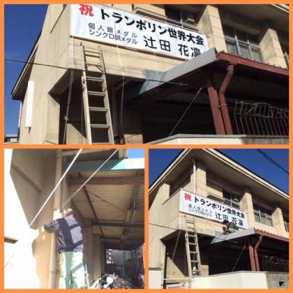 PTAのご協力で作っていただいた横断幕は、管理作業員さんによって設置されました。
