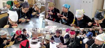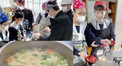 豚汁をつくる様子とおいしそうに食べる様子です。
