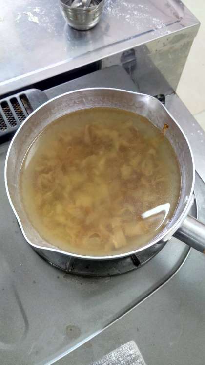 小麦粉からうどんを作って鰹節からだしを取り、本格的なうどんを作りました。