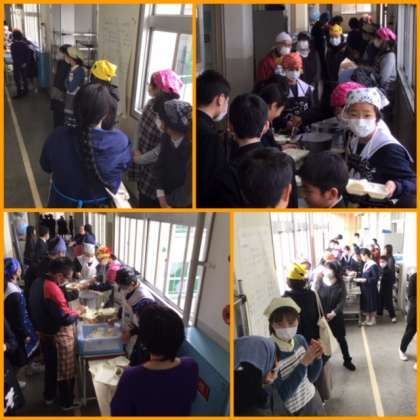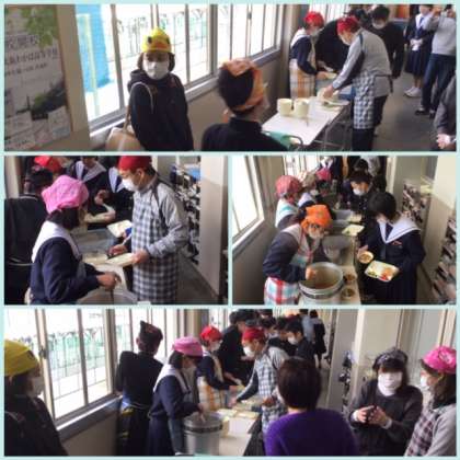 PTAの方々による試食会が行われました。生徒の配膳の様子を参加していただいた後、生徒達が食べている本日の献立料理を実際に試食されました。