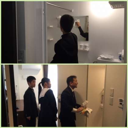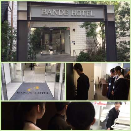 玉出商店街の中にあるバンデホテルには、3名の生徒がお世話になっています。ベッドメイキングなどを教えてもらったり、受付の仕方なども教えていただきました。館内や客室の掃除を丁寧にしていました。