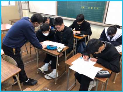 三年生対象に、学校元気アップ事業放課後学習会が行われました。1、2年生は、明日から学年末テストですが、公立高校一般選抜が差し迫った三年生はさらに必死です。