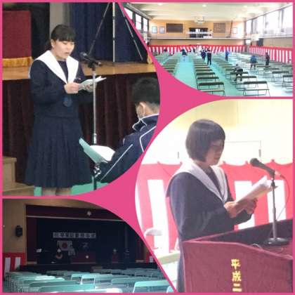 卒業生の皆さんは、8:40〜8:50の間に登校してください。登校したら、アルコール消毒液で手指の消毒をして、その後先生方の指示を聞いてください。換気のため、会場の窓・扉を開放しているため寒さ対策が必要です。