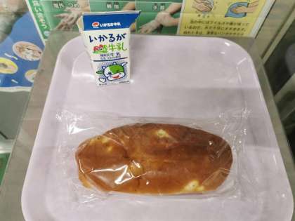 本日の簡易給食は、大人気のおさつパンと牛乳でした。