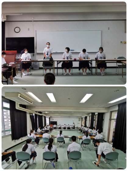 自己紹介、各委員会からの報告、委員長・生徒会の認証式、生徒会による振り返りが行われました。
