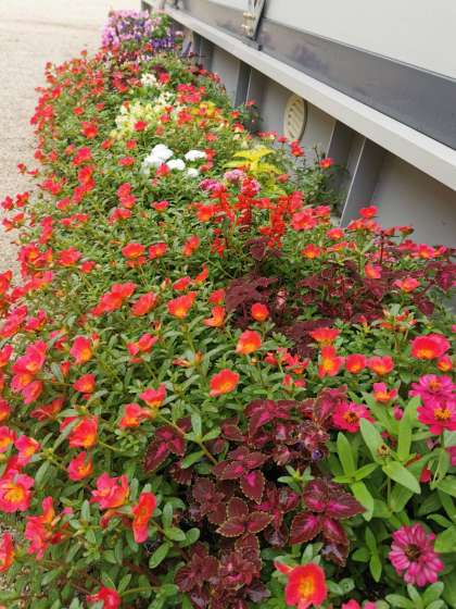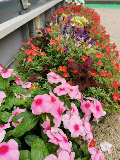 以前、お知らせさせていただいた仮設校舎前の花壇の花が満開となっています。