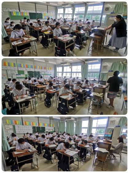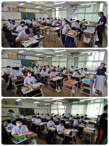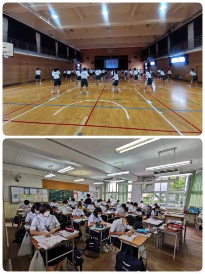 次回の土曜授業は8月1日です。4限目には学年別に避難訓練を行う予定です。