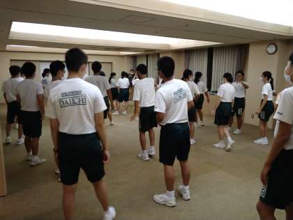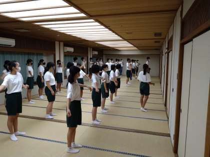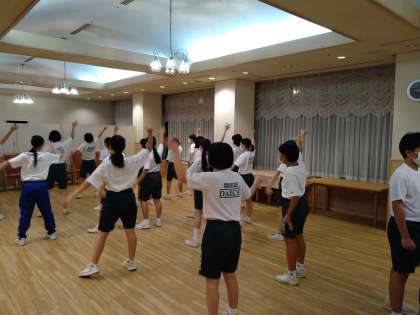 クラスの時間。運動会の応援合戦の練習をやってます。運動会が楽しみですね。