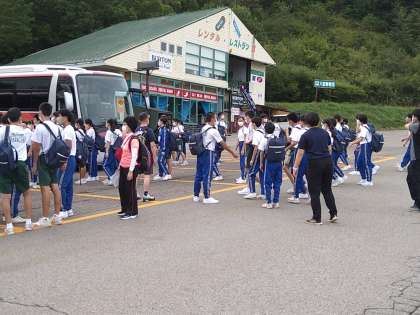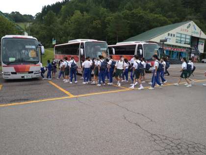 クラス写真を撮って、牧歌の里に向かいます。行って来ます!