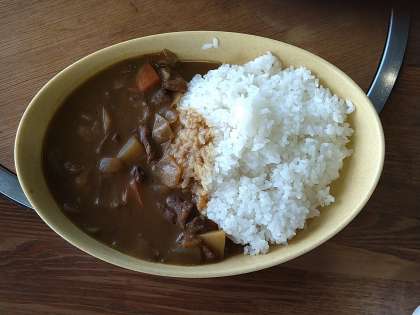 お昼ごはん。カレーです。美味しくいただいてます。