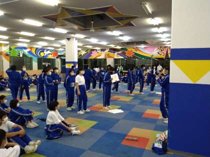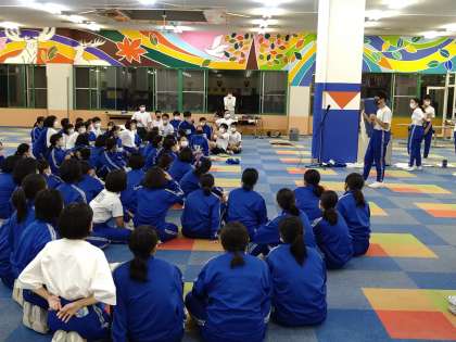 ジェスチャーゲーム、クイズを修学旅行実行委員が司会進行してレクレーション大会が行われました。ホテル前では、サプライズの打ち上げ花火もみんなで見て、盛りあがりました!