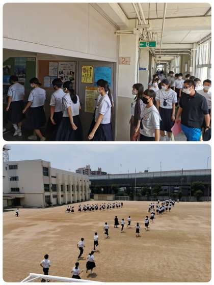 本日、地震が発生したと想定して避難訓練を行いました。