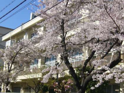 4月1日(水)、春光に照らされる正門あたりの桜が見ごろを迎えています。住吉第一中学校のホームページをご覧になっていただいている皆様方におかれましては、いつも本校のホームページをご覧いただき、ありがとうございます。