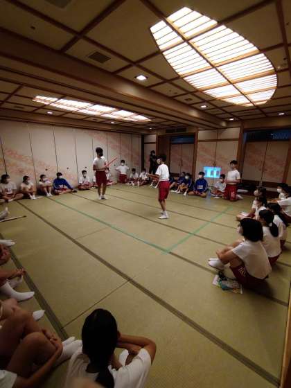 各クラスのレクレーションがスタートしました。昨日までレク係が少しずつ考えたレクレーションで大いに楽しんでいます。あれ?舞台で風船を膨らまして準備している先生たちの姿も。お疲れ様です。