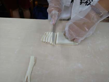 うどんを切るのもなかなか難しいようです。