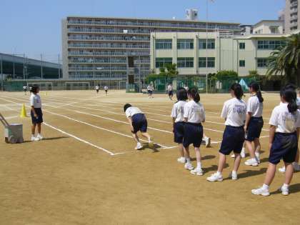 5月1日(金)5限、5月に入り一段と気温が上昇し、初夏を感じさせる気候となりました。2年生の体育の授業は、男女とも元気いっぱいの声を出し準備運動をした後、スタート練習や50m走を行っていました。懸命に腕を振り、全力でグランドを駆け抜けている様子が印象的でした。