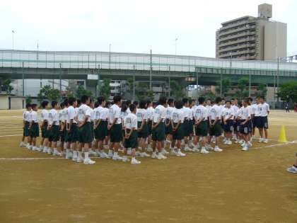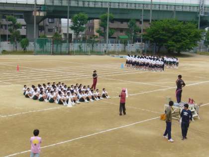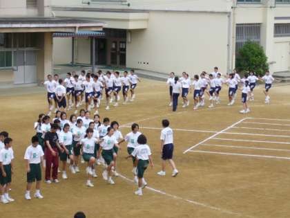 5月12日(火)1・2限、いよいよ来月に控える運動会。今日は台風の接近で雲行きが怪しく、急きょ時間割を午後と入れ替え、1・2年生合同の運動会学年練習が行われました。各学年行事や中間テストなどと並行して、今日から学年練習や全体練習が、本番までに予定されています。