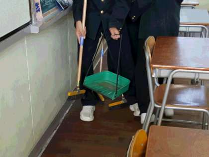 5月13日(水)放課後、本校では美化委員が、清掃後の各教室を回って【写真右】清掃状態を点検する美化強化週間を設けています。行事の関係で、3年生は、今日から5月15日(金)まで、2年生は、5月19日(火)〜21日(木)、1年生は、5月19日(火)〜22日(金)までが美化強化週間です。