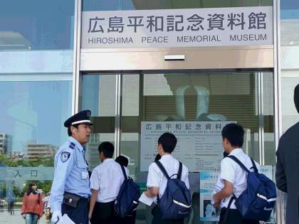 70年前の8月6日、多くの方々が被爆されたあの日。生徒たちは、当時のことが偲ばれる生々しい数々の展示品を見つめ、あまりの悲惨さに、驚きの表情を浮かべていました。改めて心に誓った戦争や紛争をしない、平和を希求するヒロシマでの思いは、より強いものとなったようです。