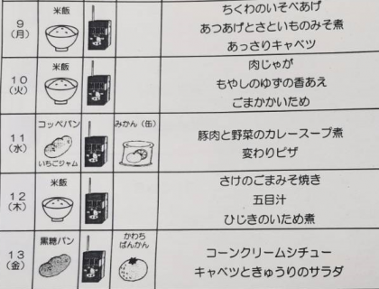 5月9日〜13日の学校給食です。