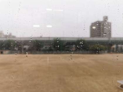 6限終了間際には雨が本降りになり、グラントも水が溜まっている状態になりました。