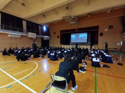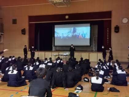 実際にウガンダと映像をつないで、中川さんが勤務していた施設の子供たちと本校の生徒代表が英語で会話するという貴重な体験をさせていただきました。