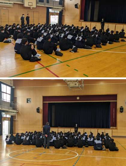 金曜日の朝、1年生の学年集会です。