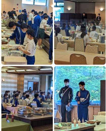朝食です。 みんな元気に起きました。 2日目も安全に気をつけて楽しみましょう。