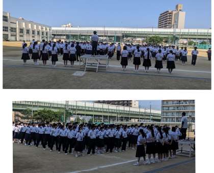 快晴のなか、全校集会です。