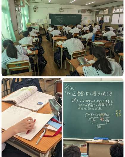 1年生の数学の授業です。 数量の間の関係の表し方について学んでいます。