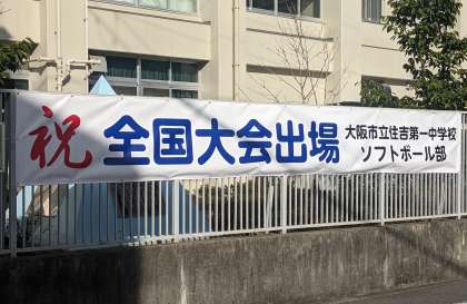 ソフトボール部全国大会出場の横断幕ができました。ご協力ありがとうございました。