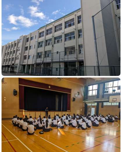 夜中に雨が降りましが晴天の朝を迎えました。3年生の学年集会です。