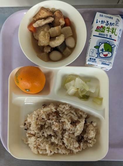 かやくご飯、牛乳。