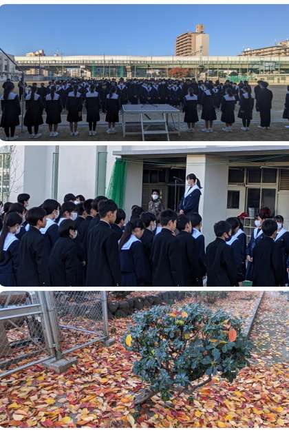 良く晴れていますが、気温は低い朝です。 全校集会をしています。