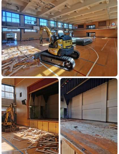 体育館の床改修工事が始まりました。 長い間親しんだ体育館ですが、2月末まで使えません。