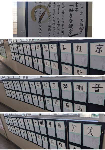 国語の書写「好きな漢字」 廊下に掲示しています。
