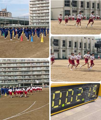 マラソン大会の学年練習をしています。