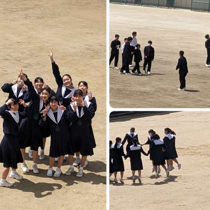 快晴の下、昼休みのグランドです。