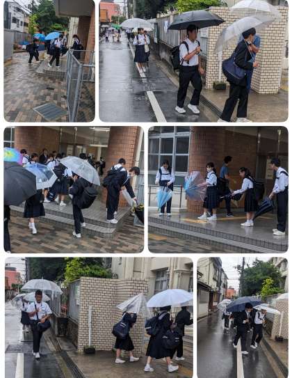 昨日までの晴天からかわって、雨の中の登校になりました。