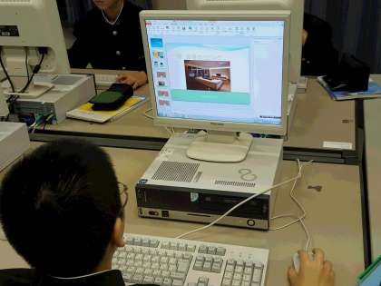 まず、前時の続きの作業である「間取り図」を仕あげ、新しいページでは自分自身で考えた「こだわりの部屋」に、インターネットから取り入れた画像を取り入れ、アニメーションを使ってインパクトのあるものを制作していきました。それぞれが、表現力豊かでわかりやすいものでした。