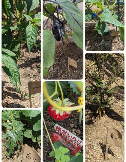 畑の野菜が成長しています。