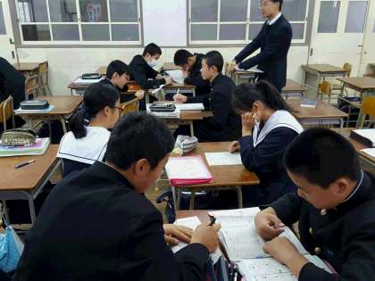 11月26日(木)1・2限、本校では平成25年度から、全学年全クラス全時間、英語科における習熟度別少人数授業を展開しています。来る12月4日(金)には、全市教員対象の研究発表会が本校で開催されます。今日は、プレ授業として、指導助言いただく先生に授業を参観いただきました。