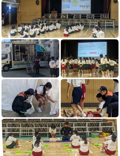 防災についての講義を聞いた後に、◯?クイズ、起震車体験、AED体験、煙テント体験、救助体験を行いました。