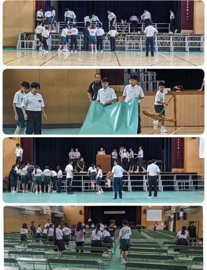 体育館の設営をしています。