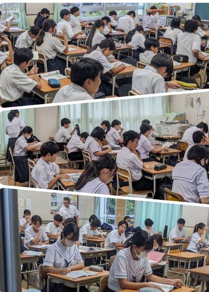 中間テストに向けて、自習をしています。 上から1年生、2年生、3年生。