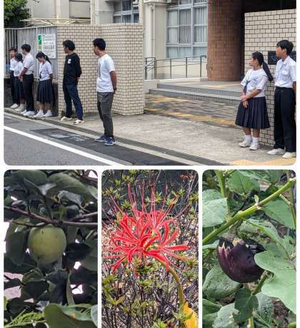 登校時、風紀委員が朝の挨拶をしています。