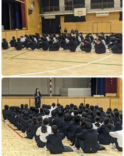 11月に入りました。 1年生が学年集会をしています。