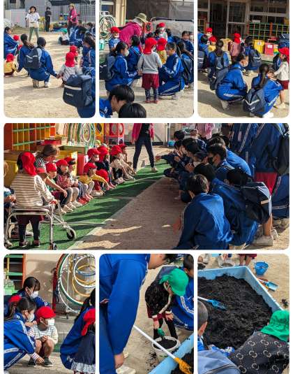 3年生は家庭科の時間に粉浜幼稚園を訪れ、保育実習を行っています。